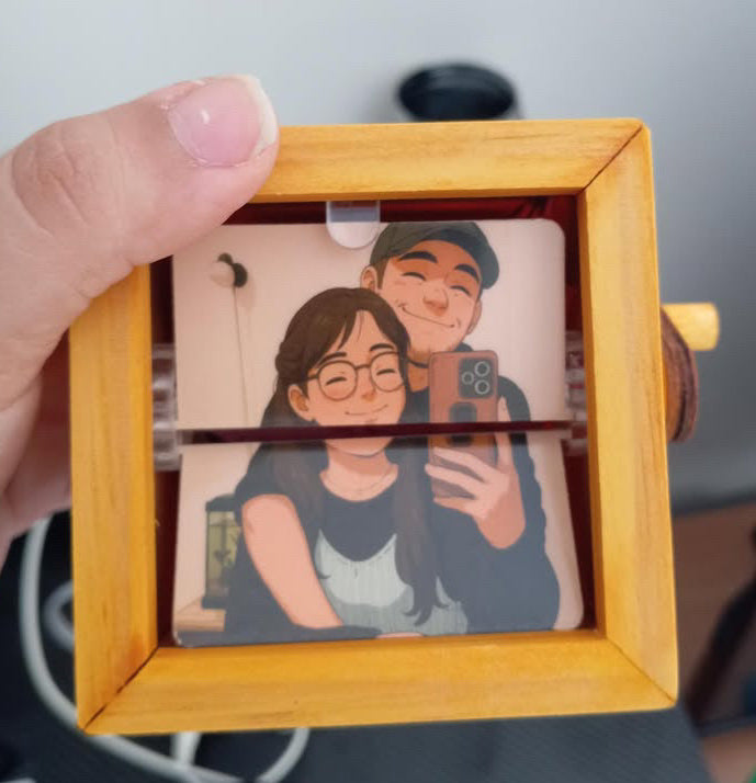 Solo tienes que subir tus fotos, y nuestro equipo las adaptará con cariño para que encajen a la perfección en el cubo. ¡Crea un regalo único que hará sonreír a tu pareja!